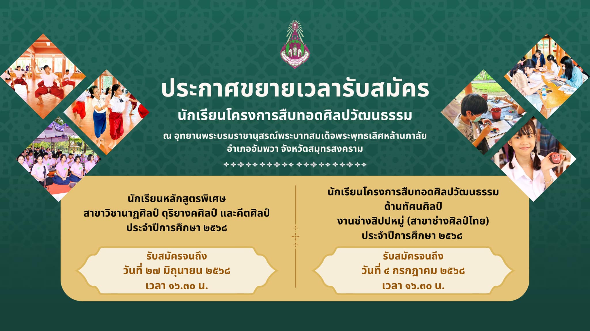 ประกาศขยายเวลารับสมัครนักเรียนโครงการสืบทอดศิลปวัฒนธรรม